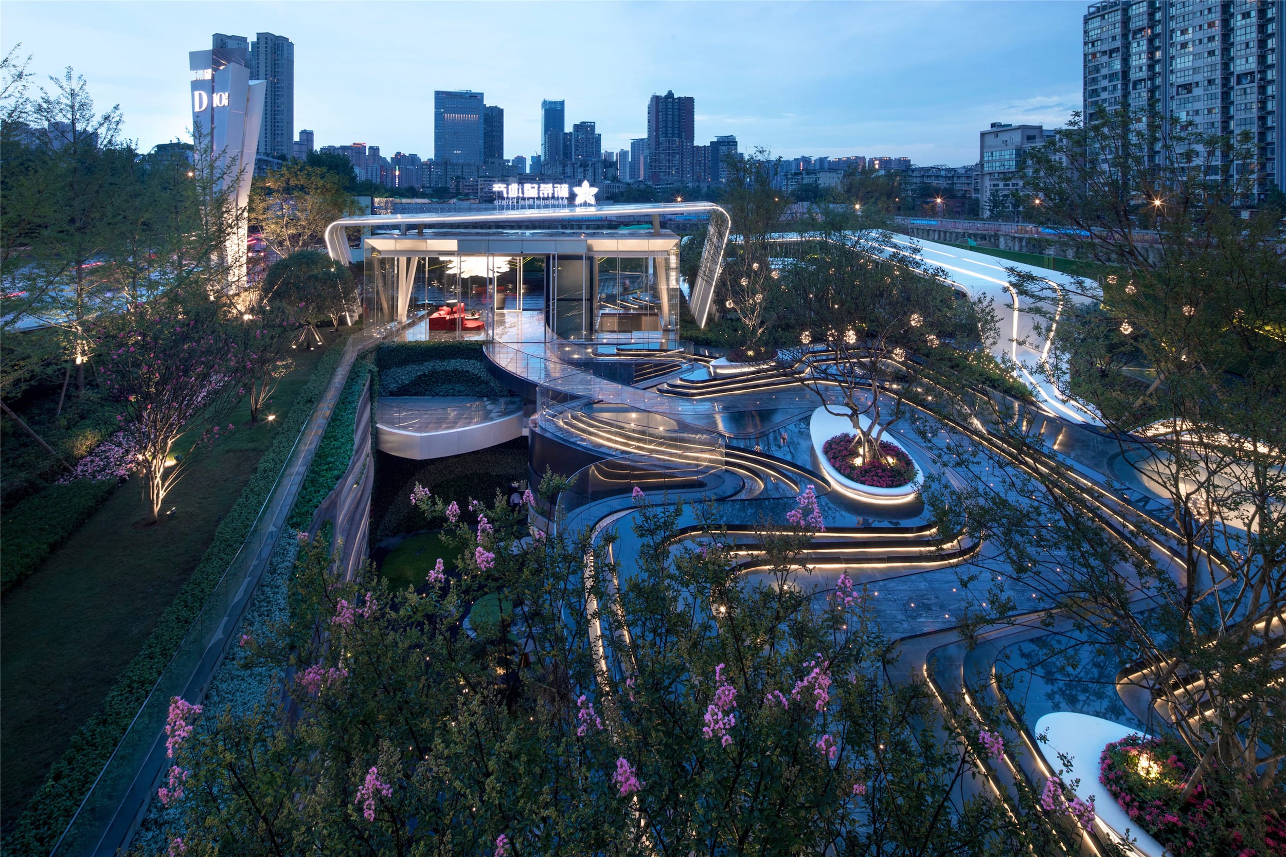 站在一個時間軸上觀看,自然空間中存在的水、光、云、風、花、谷等元素一直都是最美的景觀元素,我們遐想未來中的幾何切面與曲線造型,則是工業與科技的人為藝術產物,于是我們取兩者精粹,開始一場關于未來花園的實驗。