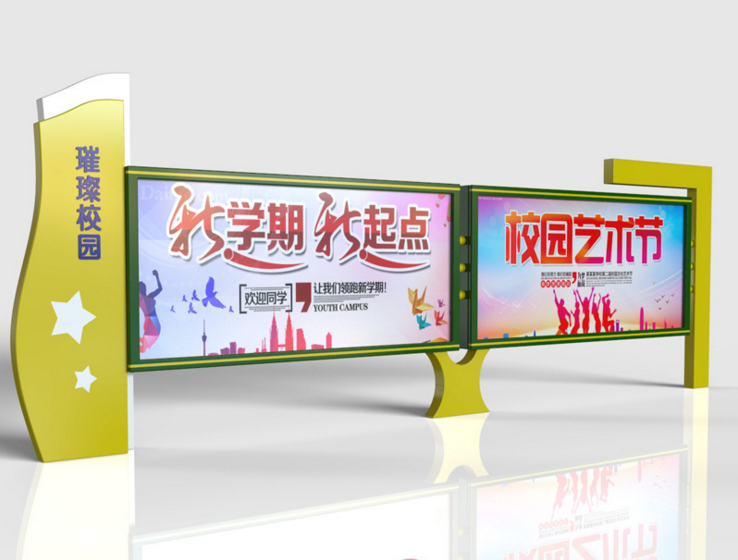 每個學(xué)校都有宣傳欄,它是展示學(xué)校文化的窗口。拓寬其更多的功能,并考慮造型與顏色,使普通的宣傳欄完美表現(xiàn)學(xué)校的特性氣質(zhì),帶給學(xué)生愈加活躍的影響。